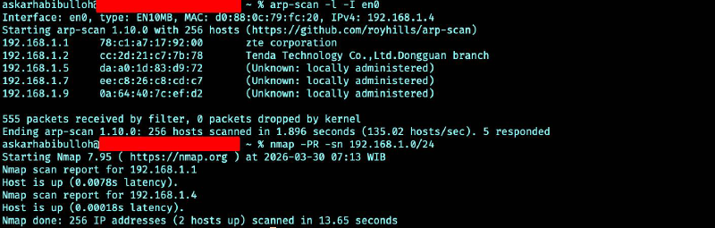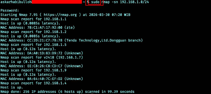 Sebelum melakukan port scanning secara masif, lakukan dulu host discovery. Tujuannya sederhana: mencari tahu host mana yang hidup dan mana yang tidak. Scanning ke host yang tidak aktif hanya akan membuang waktu, resource, dan menimbulkan noise yang tidak perlu di level jaringan.